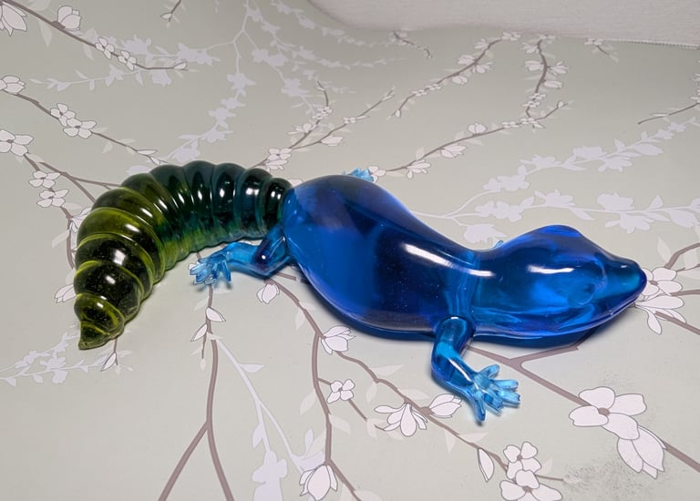 Each piece is carefully handmade, blending colors and textures to create playful, one-of-a-kind treasures. While resin is my current substance, I don't intend to limit myself.